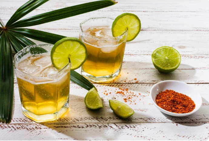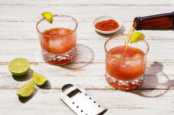 Jugo de clamato, limón, jugo Maggie, Valentina, cerveza. - Carajillo: